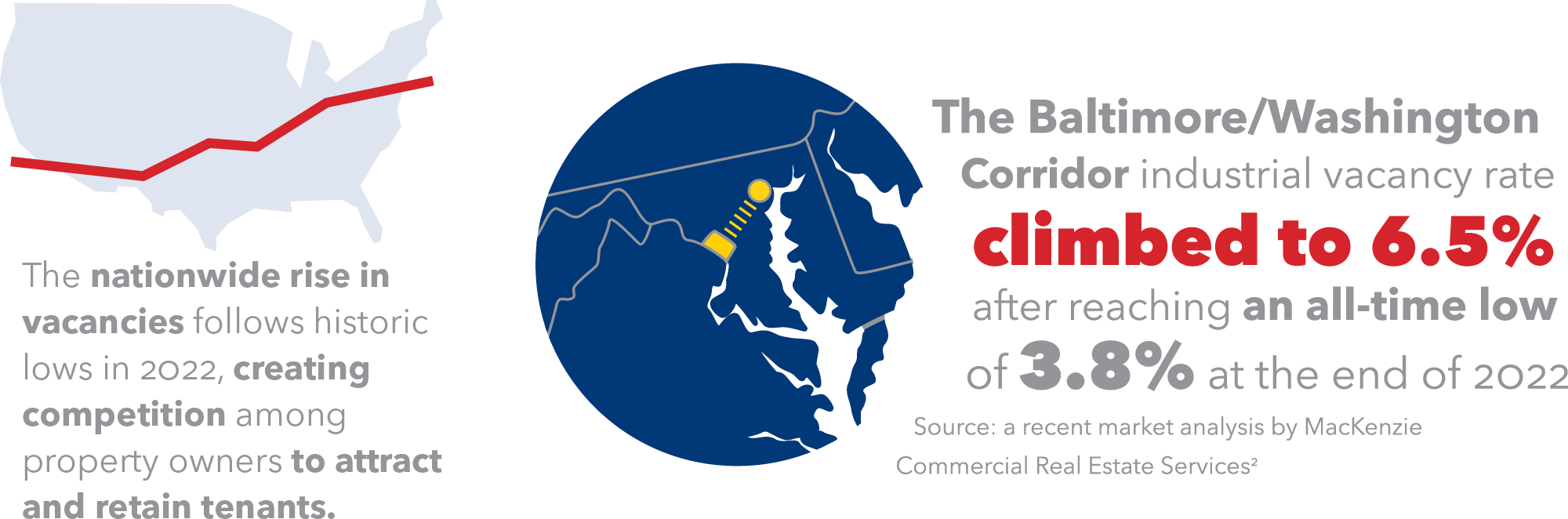 For example, in the Baltimore/Washington Corridor, the industrial vacancy rate climbed to 6.5% after reaching an all-time low of 3.8% at the end of 2022, according to a recent market analysis by MacKenzie Commercial Real Estate Services. This shift mirrors the national trend of increasing vacancies, highlighting the growing importance of strategic property improvements.