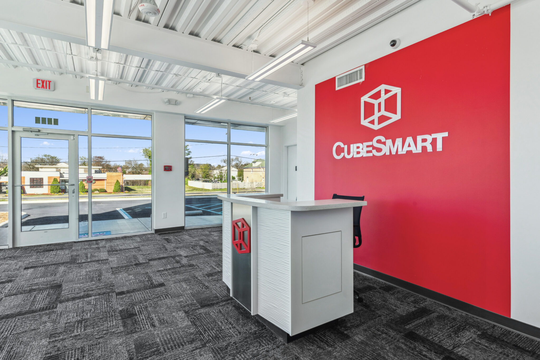 1 entry to office (lobby); 2 drive-up entries