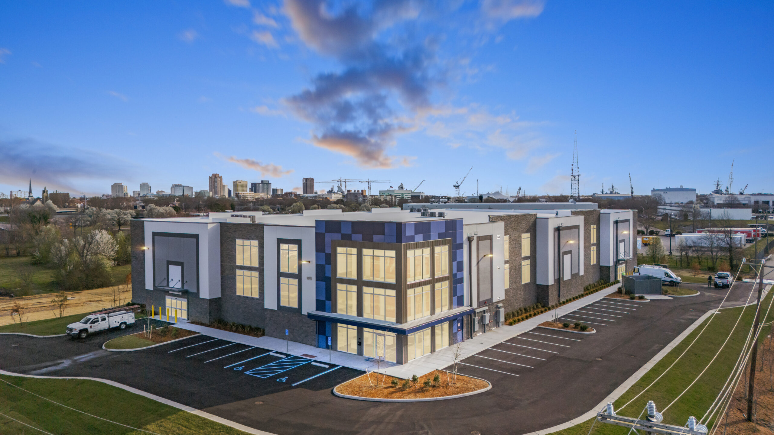 Three-Story climate controlled self-storage facility, including surface parking, utilities, entry drive and landscaping.